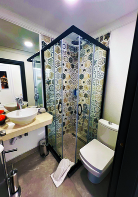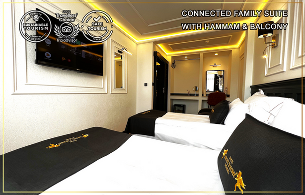 This non-smoking connected family suite offers air-conditioning. It also offers a balcony. Private bathroom comes with a private hamam (works with heating system of the hotel, there is no seperate heating system) and shower. Room rate includes: - Free minibar in the room including soft drinks and snacks - Smart TV with free Netflix - Open-buffet breakfast from 08:00 until 10:30 at the Angel's Home Hotel Roof Terrace - Complimentary patisseries, coffee and tea from 10:00 until 23:00 - Private check-in and check-out. To the rooms can be accessed via stairs only. No elevator.
